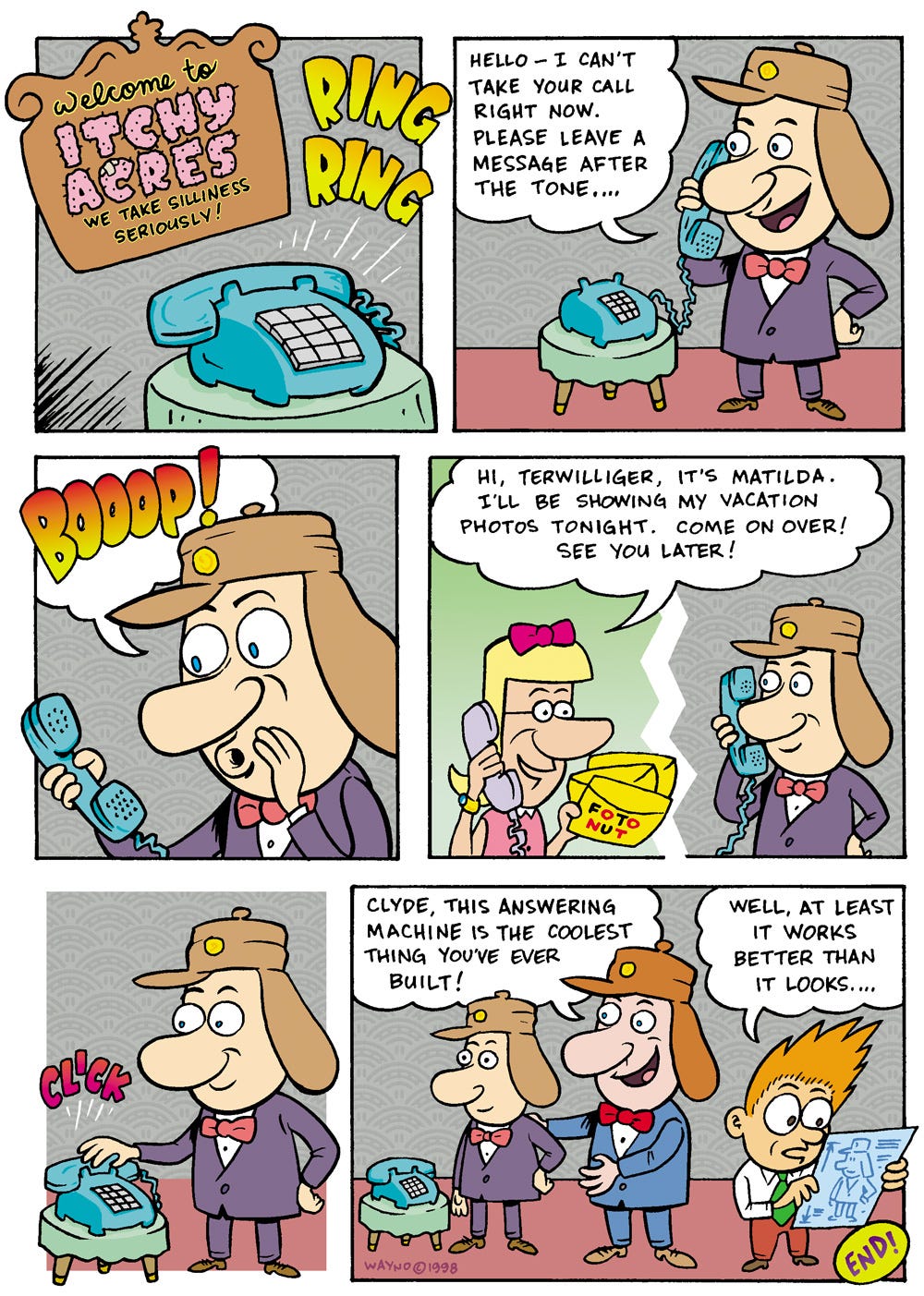 Our unearthed artifact for today is a 1998 “Itchy Acres” page from the fondly remembered Nickelodeon Magazine. That texture in the background at Terwilliger’s home is a wallpaper swatch scanned from a sample book that a hardware store was throwing away.